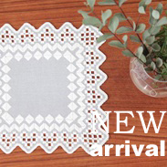 今夏の渡欧で買付した木のトレーやボックス、かご、そして相性の良い白いレースやテーブルトップを並べます。