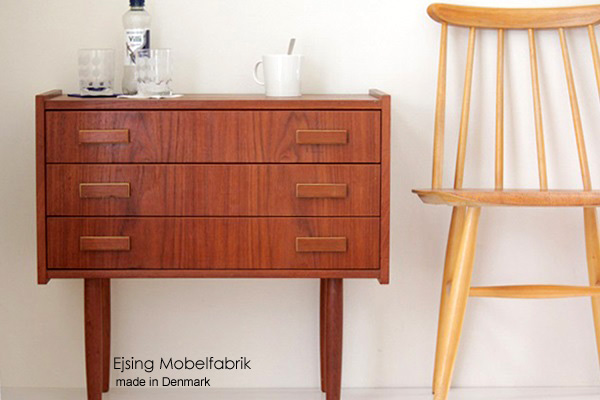 | | デンマークのEjsing Mobelfabrik A/Sで1960から70年代に作られた3段引き出しの収納家具です。シャープでスマートなデザインは北欧らしくシンプル!そして、とっても良い色合いです♪