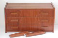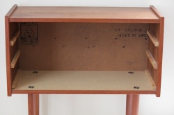 【工房】Ejsing Mobelfabrik A/S 【年代】1960~70年代 【サイズ】 W 65.0cm×D 30.5cm×H 61.0cm 引き出し内寸:W59.0cm×D24.5cm×深さ6.5 重さ :約 12.3kg 【素材】 本体:チーク、合板、 引き出し底・裏:合板 【原産国】made in Denmark