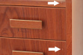 [コンディション] トップに擦りキズによる黒ズミ、側面や引き出しに小さな擦りキズやシミはありますが、50年以上前の家具とは思えないほど 全体的に綺麗です。収納引き出しに内側に多少の使用感はありますが、見た目・ご利用にも まったく問題はありません。