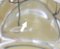 矢印部分、裏底に小さな擦りキズはありますが、全体的にヒビカケなく とても綺麗な作品です。ところどころ白くなっているのは光の反射によるもので、汚れやキズではありません。
