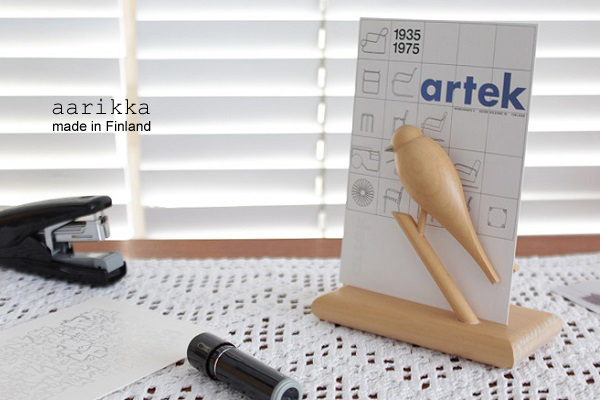 お買上金額15,000円(税込)以上で送料無料です。 TOPGOOD USED(置物) aarikka アーリッカ 小鳥のカードスタンド/ 木製 価格: ¥0 (税込) 販売期間: 数量: 個 在庫 × [ + ] 【製造年】1980年~【サイズ】 横12.0cm×縦6.0cm×高さ11.3cm 重さ:約80g【素材】木製 【原産国】made in Finland今でも木製のインテリアグッズやアクセサリーを手掛けるフィンランドのaarikka(アーリッカ)。創業は1954年と60年以上の歴史をもつ フィンランドでも人気のブランドです。現在でも創業者Kaija Aarikkaのお嬢様が引き継ぎ、デザイナー兼経営者として素敵な作品を作り続けています。こちらでご紹介するのは スマートな鳥が向き合ったカードスタンドです。コーヒーフィルターやナプキンスタンドにも良いですね。[ コンディション ]カドに小さなカケがあり、乾燥によるかさつき(蜜蝋ワックスを塗りますので実際には気にならない程度です)がありますが その他は大きなダメージなく綺麗な状態です。 [+]