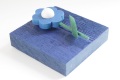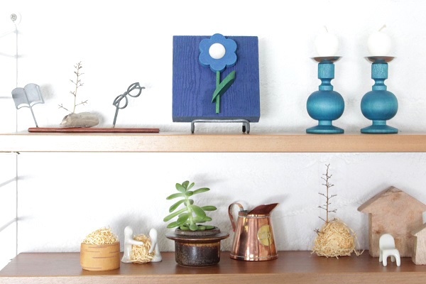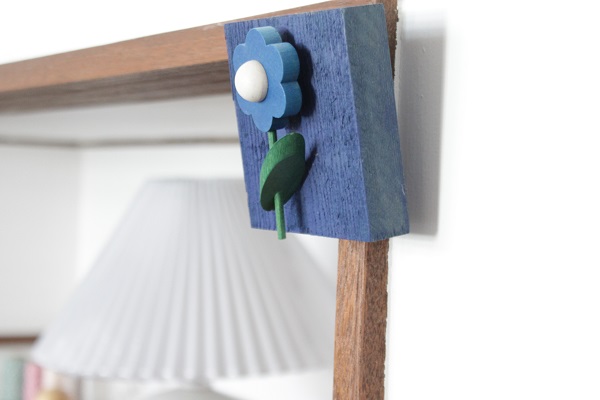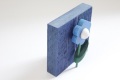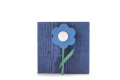 こちらでご紹介するのは 青いお花の壁掛けです。裏側に紐がついているので、そのまま壁掛けにできます。カードスタンドなどで棚置きにしても◎
