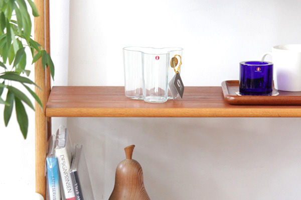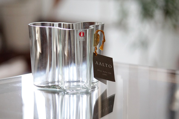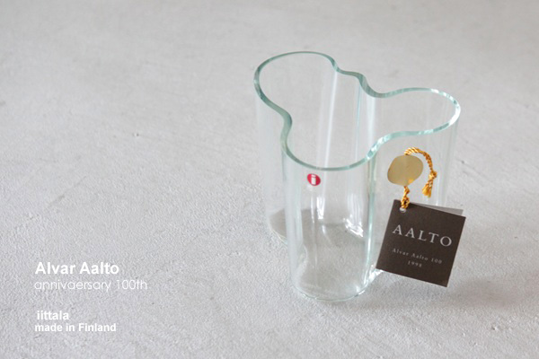 Alvar Aalto アルヴァ・アアルトの代表シリーズのAalto vase(Savoy サヴォイ ベース)がデザイン、作られたのは1937年。その初期のグリーンがかったクリアガラスで復刻製造されたのがアアルト生誕100周年を記念したこの1998年限定モデルです。