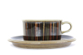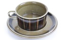 【サイズ】 カップ:口径 10.2cm×H 5.5cm 容量 約260ml ソーサー:幅16.0cm 【カラー】ブラウングリーン 【デザイナー】 Ulla Procope ウラ・プロコッペ G.O.G グンヴァル・オリン・グランクヴィスト 【素材】陶器、陶磁器 【原産国】made in Finland