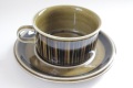 【サイズ】 カップ:口径 10.2cm×H 5.5cm 容量 約260ml ソーサー:幅16.0cm 【カラー】ブラウングリーン 【デザイナー】 Ulla Procope ウラ・プロコッペ G.O.G グンヴァル・オリン・グランクヴィスト 【素材】陶器、陶磁器 【原産国】made in Finland