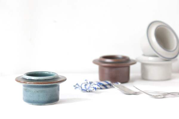 こちらはエッグカップ、もとはゆで卵をおいて スプーンで食べるためのスタンドですが お惣菜やおつまみ、ディップやソースなどにもいいですね。 また事務用品やコインを入れたり グリーンとの相性がとっても良いので小さな多肉植物のポットにも◎