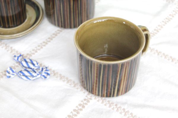 【サイズ】 全幅 13cm×口径 10cm×H 8.3cm 重さ 約358g 容量 約410ml 【カラー】ブラウングリーン 【デザイナー】 Ulla Procope ウラ・プロコッペ G.O.G グンヴァル・オリン・グランクヴィスト 【素材】陶器 / 陶磁器 【原産国】made in Finland