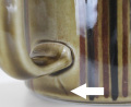 [ コンディション] 矢印部分、爪あとのようなスジ、施釉ムラや小さな凹凸などありますがいずれも製造時レベルで不良不具合ではありません。また光にかざすと多少の擦りキズはありますが 全体的には綺麗で良いコンディションです。 ところどころ白くなっているのは 光の反射によるものでキズや汚れではありません。