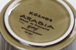 ※手描きデコレーションされているため、一点一点微妙に違うのも魅力の一つです。 | | ARABIA人気デザイナー“Ulla Procopeウラ・プロコペ”のSモデルに、G.O.Gグンヴァル・オリン・グランクヴィストが装飾を担当したKOSMOSコスモス。ブラウングリーンの落ちついた色合いです。
