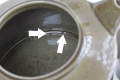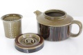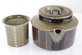 [ コンディション] フタのふちや注ぎ口の裏に施釉ムラで白っぽくなっている箇所、底に小さな凹凸、ストレーナー底高台に小さな凹みなどありますが、いずれも製造時に出来たもので 不良不具合ではありません。その他、多少のクスミや目立たない小さな擦りキズはありますが、全体的に綺麗なコンディションです。