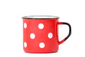 こちらはポーランドで作られた、ホーロー製のマグカップです。レッドベースに白いドットがとても可愛らしく インテリアにも◎