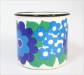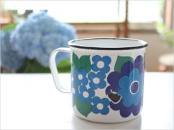 | | 1960年代から70年代にフィンランドで広く愛されたホーロー家庭キッチン用品のメーカー“FINEL(フィネル社)”のホーロー製マグです。フォルムはホーロー製品においても 多くのデザインを手がけたカイ・フランクです。とてもシンプルなデザインにブルーの花柄がとても素敵です。 【製造年】1960年~ 【デザイナー】フォルム:カイ・フランク 【デコレーション】不明 【サイズ】口径 8.5cm×高さ 8.0cm 【素材】ホーロー製 【原産国】made in Finland [ コンディション ]★★★ 横にホーローの剥がれがあります。その他 多少のペイントロスや擦り傷はありますが内外側ともに綺麗な状態です。底のロゴはFINEL made in Finlandと入っています。  (+) |