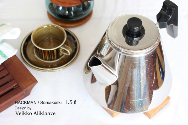| | HACKMAN/Sorsakoskiのステンレスポットです。1960年代後半から70年の製造で、シンプルながら 随所に扱いやすさを考えたデザインがされています。