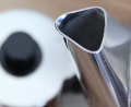 シュッとしたホルムに 形状にあわせたストレートの持ち手は 親指が掛けやすいように上部はカーブを描いて、注ぎ口も垂れにくいように ちょっとシェープに工夫が!そしてなんといってもカッコいいフォルムは 使わないときに棚にあるだけで なんとなく楽しくなりますね♪