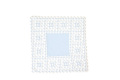 落ち着いた色合いの薄いブルー(水色)をベースに 白糸で幾何学模様の刺繍は ひかえめながら 存在感あるテーブルトップ / 敷物としてお楽しみ頂けます。