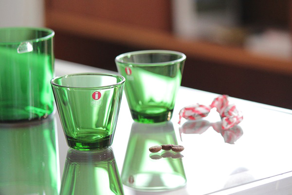 【シリーズ】Kartio カルティオ 【デザイン】kaj Franck 【サイズ】 高さ 5.5cm×幅 6.2cm 容量 約80ml 重さ 約88g 【素材】ガラス / グリーン 【原産国】made in Finland