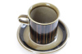 【サイズ】 カップ:口径 7.0cm×H 7.5cm 容量 約140ml ソーサー:幅12.5cm 【カラー】ブラウングリーン 【デザイナー】 Ulla Procope ウラ・プロコッペ G.O.G グンヴァル・オリン・グランクヴィスト 【素材】陶器、陶磁器 【原産国】made in Finland