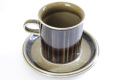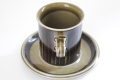 【サイズ】 カップ:口径 7.0cm×H 7.5cm 容量 約140ml ソーサー:幅12.5cm 【カラー】ブラウングリーン 【デザイナー】 Ulla Procope ウラ・プロコッペ G.O.G グンヴァル・オリン・グランクヴィスト 【素材】陶器、陶磁器 【原産国】made in Finland