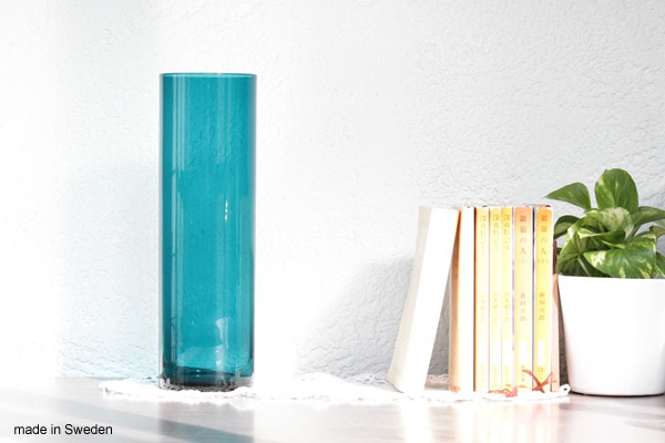 | | スウェーデンのLindshammarガラス工房で作られたシンプルな筒状のフラワーベース(花器)です。草花を活けて楽しむためのガラス花瓶ですが、青みがかった綺麗なグリーンのガラスは、そのまま棚置きで置物として飾っても素敵です。光にあたると◎