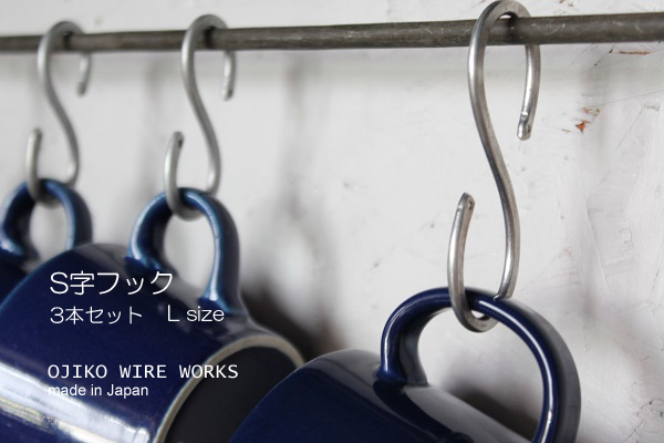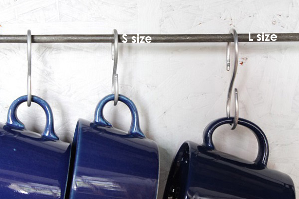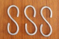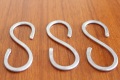 さまざまな用途に使えるS字フックLサイズの3本セットです。厚みがあまりないので手で曲げることができ、カタチは微調整できます。