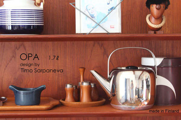 [ OPA について] 1926年創業のフィンランドのステンレススチールメーカー。ケトルが有名でフィンランドのキッチン家庭用品売り場には、ほぼ間違えなくあります。現在でも製造生産が行われていますが、そのほとんどはmade in Chinaへ移行しています。