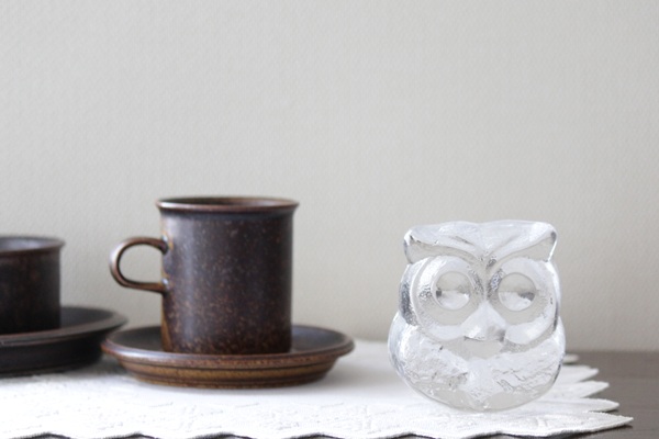 お買上金額15,000円(税込)以上で送料無料です。 TOPGOOD USED (ガラス製品) SKRUF/スクルーフ フクロウ(Mサイズ) 価格: ¥4,840 (税込) [ポイント還元 48ポイント~] 販売期間: 数量: 個 在庫 ○ [ + ]【製造年】1960-70年代【デザイン】Lars Hellsten【サイズ】 Mサイズ幅 8.0cm×高さ 8.5cm×奥3.7cm【素材】ガラス 重さ 約445g 【原産国】made in Swedenスウェーデンのガラス作家 Lars Hellstenが Skruf glas bruks(スクルーフガラス工房)でデザインしたフクロウのガラスのオブジェです。3サイズからなるこのフクロウ、こちらは真ん中のMサイズのご紹介で しっかり重さもあるのでペーパーウェイトとして、またそこがラウンドしているので振り子のように左右に揺れる楽しいデザインです♪[ コンディション ]矢印部分、裏底に小さな擦りキズがありますが 見た目・ご利用にもまったく問題ありません。SKRUFのロゴシールは擦れていますが残っています。 [ + ][ サイズ参考 ]