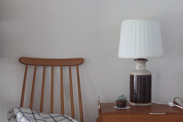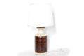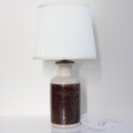 こちらは どっしりとした素朴で温かみのある陶器卓上ランプです。 濃い茶とオフホワイトの落ち着いた施釉で、凹凸ある仕上がりは、とても雰囲気あるランプです。