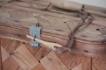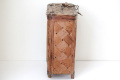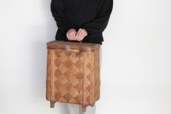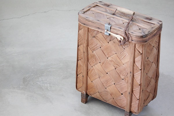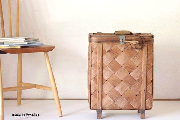 はっきりとした始まりは謎のままですが、スウェーデンの伝統的民芸・民具のひとつで木の皮と枝を編みこんだ バスケット作りは、1800年代初頭には北の地方(ダーラナ以北)で始まっていたと当店の資料に記載があります。ここでご紹介しているバスケットは、この作りから100年近くまえに作られた古いスポーンコリ、リュック型収納バスケットと思われ、もとは山仕事、農作業で収穫したものを入れて背負って運ぶためのカゴでした。今ではモノを運ぶには不向きですが 生地や雑誌の収納、そして草花を飾ったりしてインテリアとして十分にお楽しみ頂ける素敵な北欧の民芸品です。