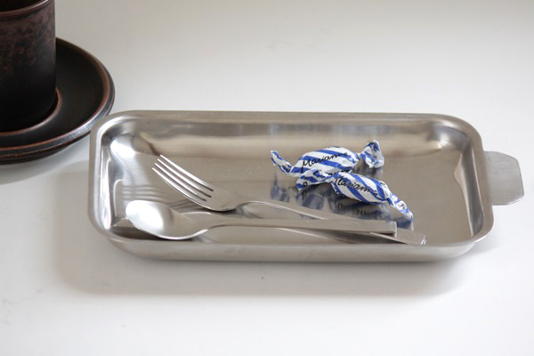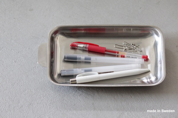 こちらはスウェーデン STAKO社で作られた、ステンレス製トレーです。少し深さがあり ステーショナリーや小物などの整理収納トレーにいいですね。