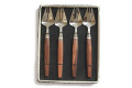 【メーカー】不明 【デザイナー】不明 【製造年】1960年代~70年代 【サイズ】 長さ17.0cm×幅3.2cm×持ち手厚み0.7cm パッケージ:縦19cm×横14.5cm×厚み2.5 1本あたりの重さ: 約17g 【素材】ステンレススチール、ウッド 【原産国】made in Sweden