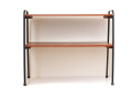 黒のスチールフレームと綺麗なチーク材の棚板の組み合わせは スウェーデンらしくシンプルなデザインながら存在感がありインテリアとして引き締まります。