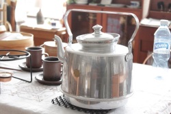 スウェーデンのLundin & Lindberg AB(1919-1987)で1950年代に作られた 軽いアルミニウム製の大きなやかんです。経年による擦りキズやクスミ、擦り汚れなどありますが とても雰囲気のあるビンテージの古いやかん、冬はストーブの上が定位置ですが 草花用のポットとしても◎古いものがお好きな方には、置いてあるだけもインテリアとしてお楽しみ頂けます。