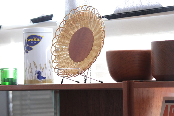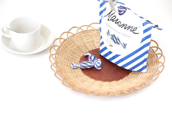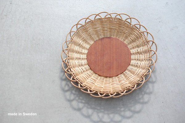 こちらはメーカーは不明ですがスウェーデンで作られた籐と合板のトレーです。