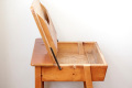 開閉式のテーブルトップは 内側にはポケットがついていて、本やカード類、書類などの収納に便利。高さも約71cmで一般的なダイニングテーブルとほぼ同じ、大人も十分にご利用頂けるサイズです。