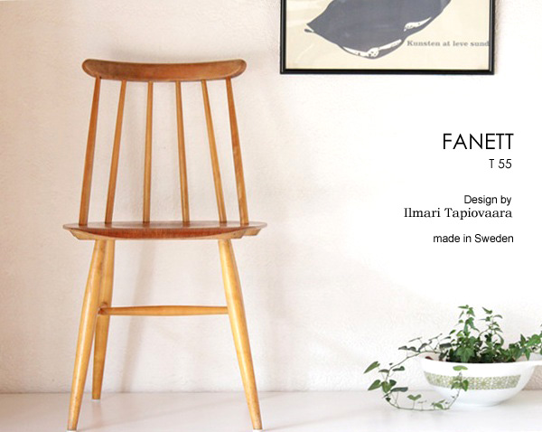 爆発的人気があったファネットT55、T65も1970年には製造中止となり、今ではビンテージ市場でのみ探すことになった北欧を代表するスポークチェアです。