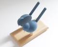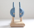 こちらでご紹介するのは ペーパーナプキンを収納する木製スタンド、優しい色合いの青い鳥です。上の写真は一般的な紙ナプキン(パッケージサイズ12.5cm×12.5cm)を挟んでいますが、ポストカードやコーヒーフィルターなどのホルダーとしても楽しいですね♪