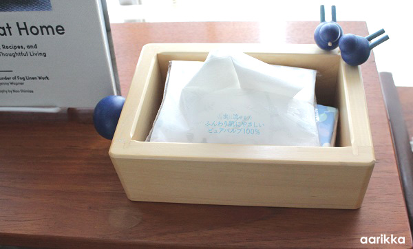 こちらご紹介するのは、もとはバターケース(バターの箱を枠に入れる)用に作られたようですが、可愛い小鳥がのった しっかりとした木枠はそれだけでインテリアになります。ちょうどポケットティッシュが収まるサイズで、ビニールから出してティシュ入れにしてもいいですね。