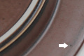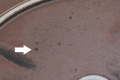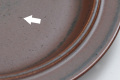 矢印部分、表裏ともに小さな凹凸、ピンホール(針で突いたような点)がありますがいずれも製造時レベルで不良不具合ではありません。その他、多少の擦れはありますがヒビ・カケのない良いコンディションです。