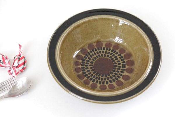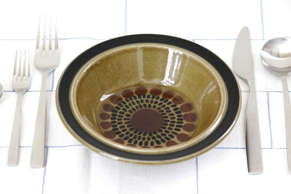 ARABIA人気デザイナー“Ulla Procopeウラ・プロコペ”のSモデルに、G.O.Gグンヴァル・オリン・グランクヴィストが装飾を担当したKOSMOSコスモス。ブラウングリーンの落ちついた色合いです。