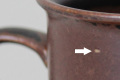 矢印部分、カップ側面に白く小さな凸、施釉ムラの白点、ソーサー裏高台に焼きジミがありますが、いずれも製造時レベルで不良不具合ではありません。その他、多少の擦れはありますが全体的には綺麗なコンディションです。