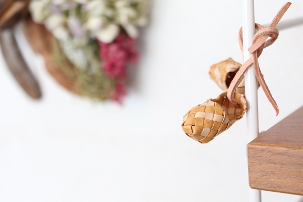 北欧の伝統手工芸である白樺細工。フィンランド、ヘルシンキ郊外在住のG.Lottanenさんが作る小さな小さな靴の飾りです。