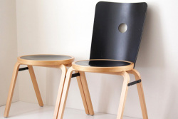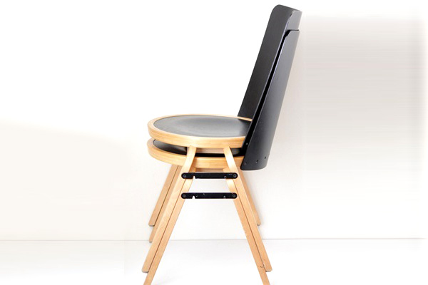 もとは図書館、会議室、駅、ホテルなど公共施設での使用を目的につくられた椅子はスタッキング、連結可能な機能重視。