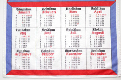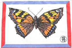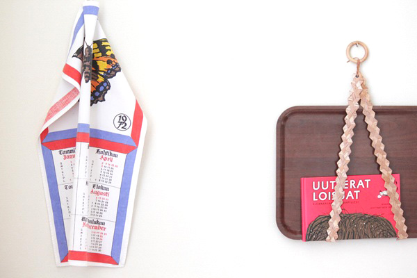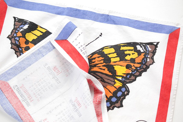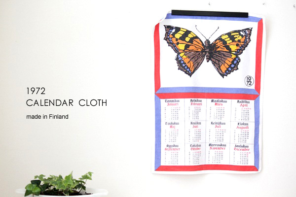 フィンランドのキッチンクロス、1972年のカレンダーです。大きく蝶々が描かれた50年以上も前のデザイン、フィンランド語表記になりますがインテリアとして壁掛けにしたり、カゴにかけたり、もちろん食器拭きにも◎