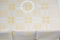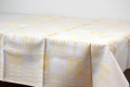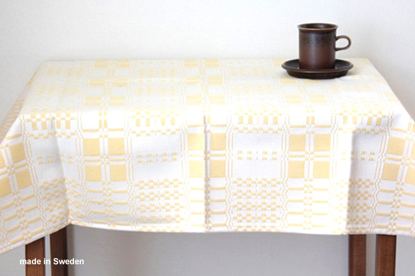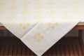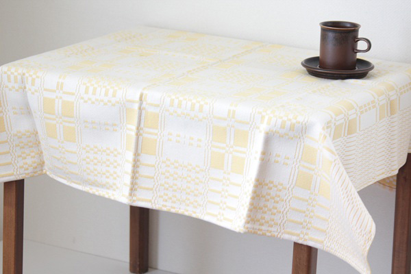 こちらはしっかりとした厚地にホワイト×イエロー柄が入ったテーブルトップ。約90cm四方と小さめサイズなのでソファーや椅子にかけたり、目隠しやテーブルトップとして◎