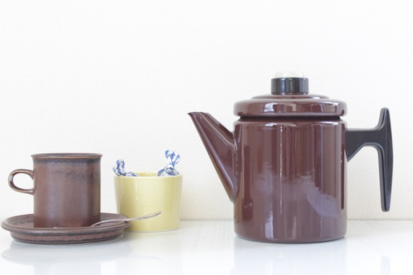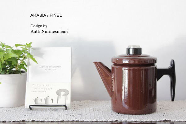 1960年代から80年代ころフィンランドで一般的に広く愛されたホーロー家庭キッチン用品のメーカーでカラフルなホーロー製品が有名です。なかでもこのAntti Nurnesniemiのコーヒーポットは時代を超えて愛され続けられているロングライフなデザインです。