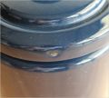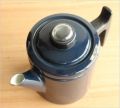 全体的に良い状態です。外側ホーロー部分、内側ともに綺麗なダークブルーSです。蓋に小さな凹み、持ち手にあせた擦れがありますが実際にはそれほど気になりません。またそそぎ口の中に多少の汚れ使用感サビがあります。