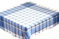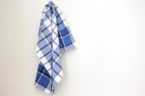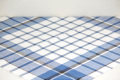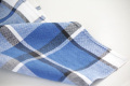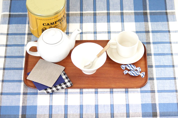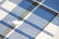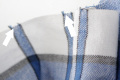 こちらは柔らかい風合いの小さめファブリックで、ホワイト地にブルーとブラックのチェック柄。年間を通してテーブルトップやサイドテーブル、カゴの目隠しとしてお楽しみ頂けます。