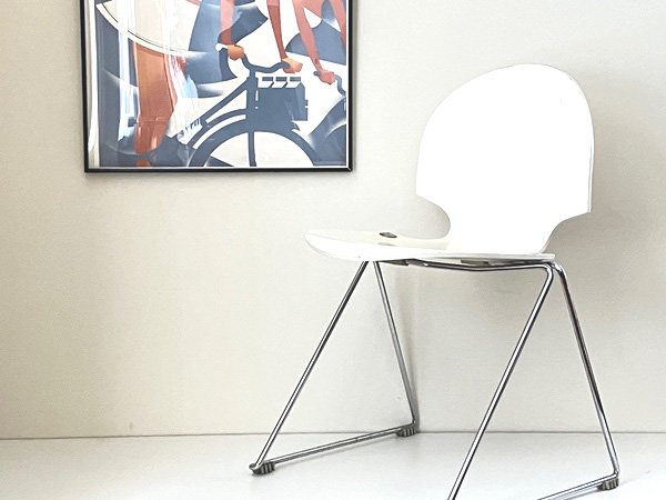 こちらはFritz Hansen Denmark フリッツ・ハンセンで1986年につくられたMinskerチェア。アントチェア、セブンチェアと同様にフリッツ・ハンセンならではの成型合板に 丈夫でしっかりとしたスチールパイプの脚、もちろんスタッキング可能です。