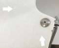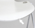 ところどころ小さな擦りキズやあたりキズ、クスミ、座面の合板の木目に沿ってペイントのスジ状のわれ、ふちにペイントの剥がれ、脚のスチールにクスミなどありますが、経年ビンテージとして見ため・ご利用に問題なく、全体的に良いコンデションです。ガタツキやダメージはなく、しっかりと安定した椅子でまだまだ十分にご利用頂けます。